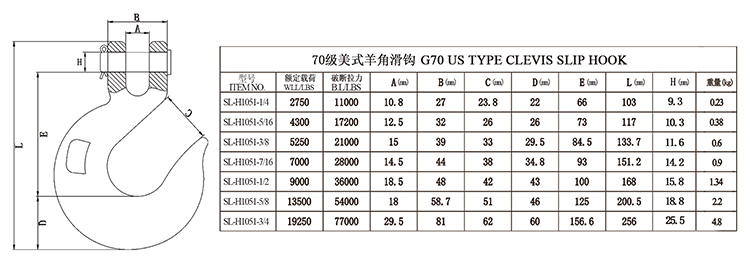 1、特点:高强度优质合金钢模锻。 2、适用于和70级索具配件配合使用。 3、制造检测拉力为额定载荷的2倍。以额定载荷的1.5倍,抽样做20000次的循环疲劳测试。 4、100%进行磁粉探伤。